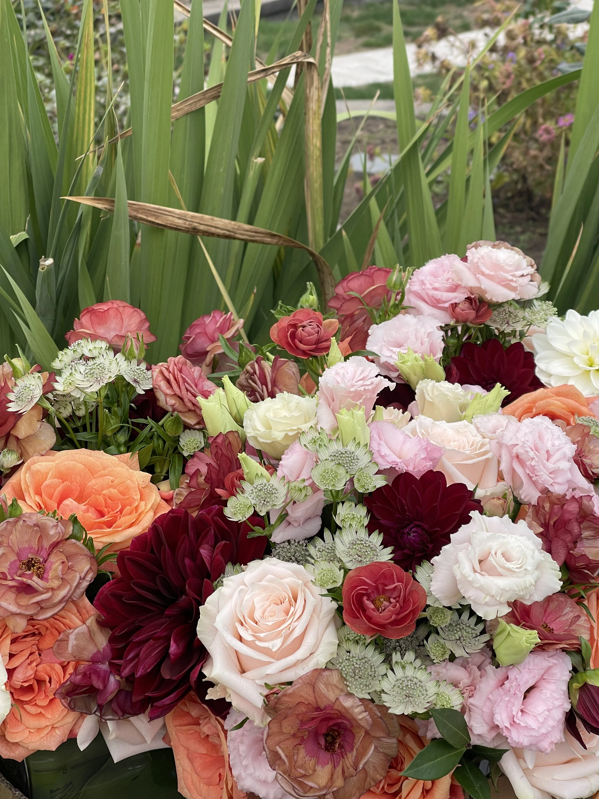 At Blue Elephant Floral Studio, we take a creative approach to boutonnières, going beyond tradition. We hand-select blooms and greenery that perfectly suit the occasion, sometimes even incorporating premium dried flowers to introduce texture and vibrant pops of color when the design calls for it. Each boutonnière is a unique work of art, crafted with hand-torn chiffon ribbon featuring a natural fringe for a romantic, organic feel.